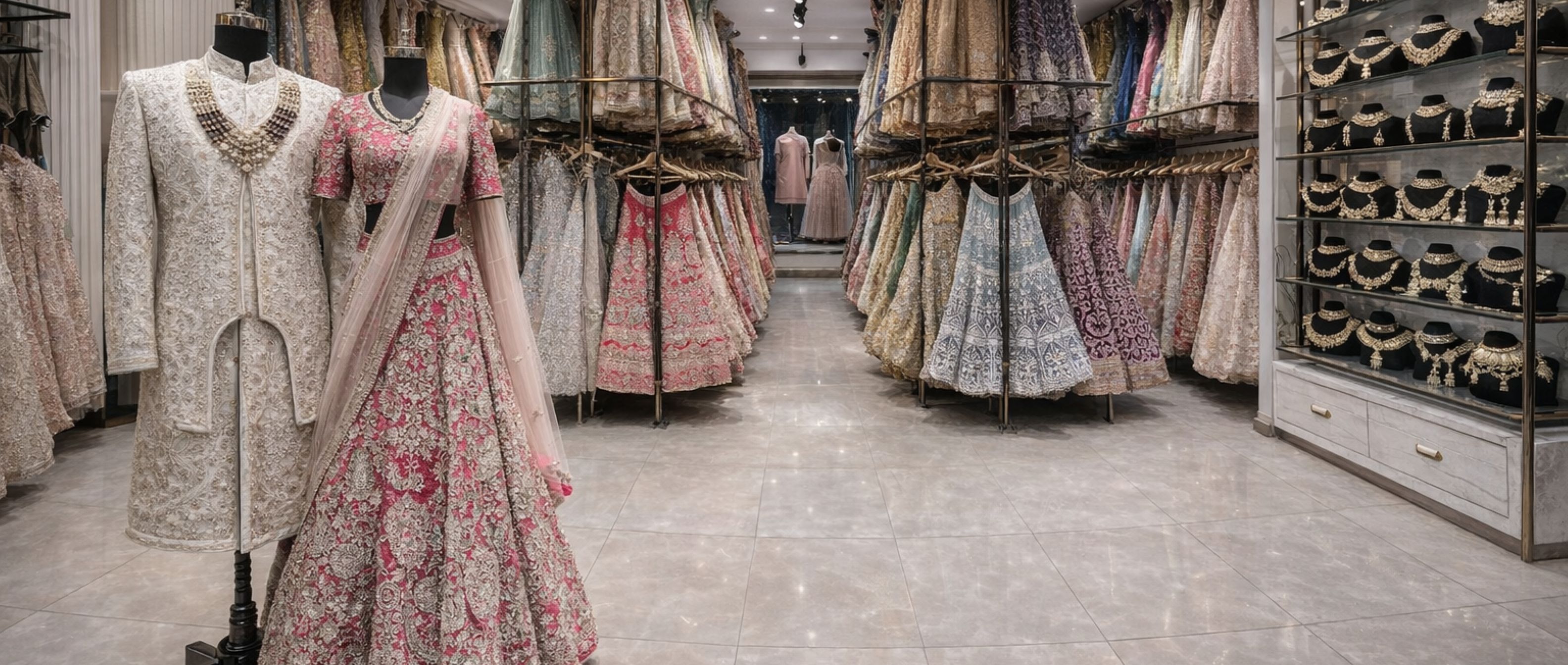 For Women: Choose from bridal lehengas, sarees, gowns, anarkalis, and Indo-Western dresses.